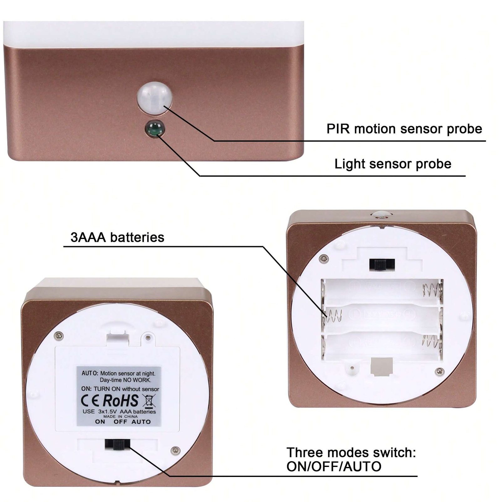 Retro Square LED Night Light Lamp Wireless Motion Sensor by 3AAA battery